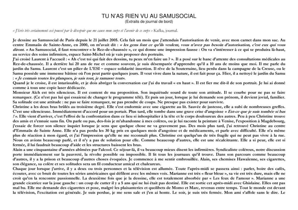 2005 TU N’AS RIEN VU AU SAMU SOCIAL, Espace Saint-Michel, Samu Social de Paris, Saint-Mandé