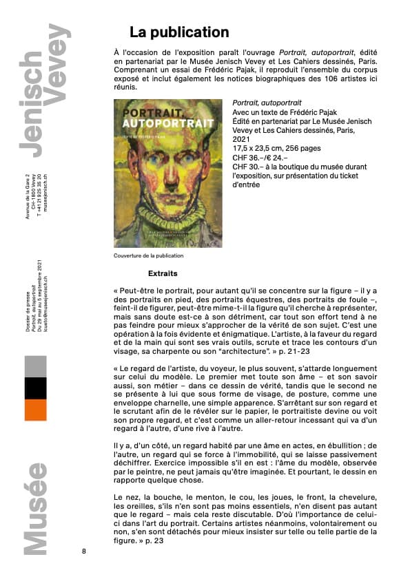 2021 PORTRAIT, AUTOPORTRAIT, Les Cahiers Dessinés au musée Jenisch de Vevey, Suisse