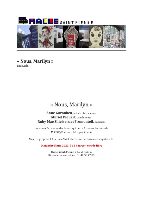 2022 NOUS, MARILYN, performance Halle Saint-Pierre, Paris