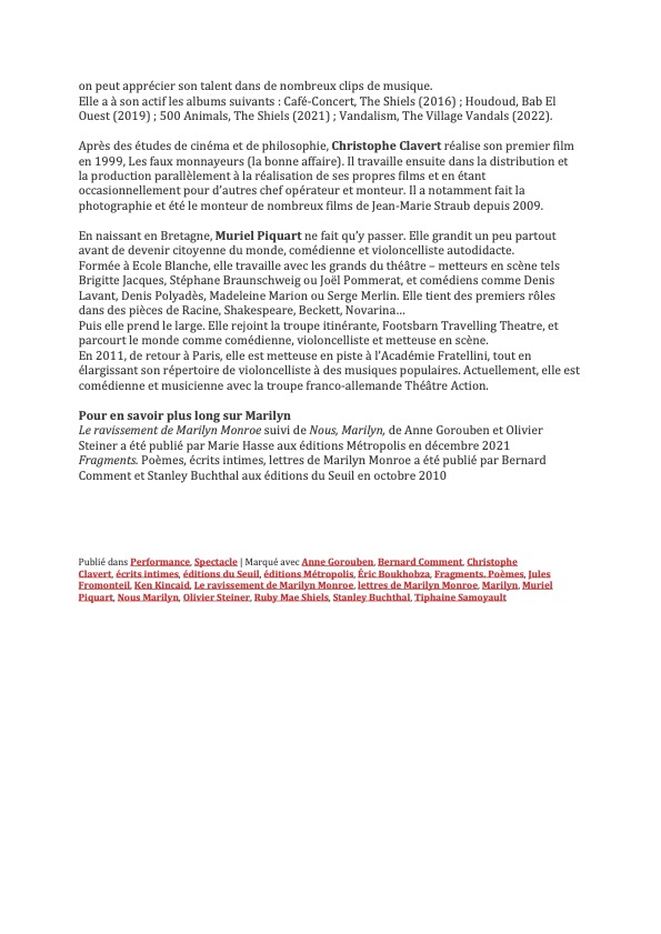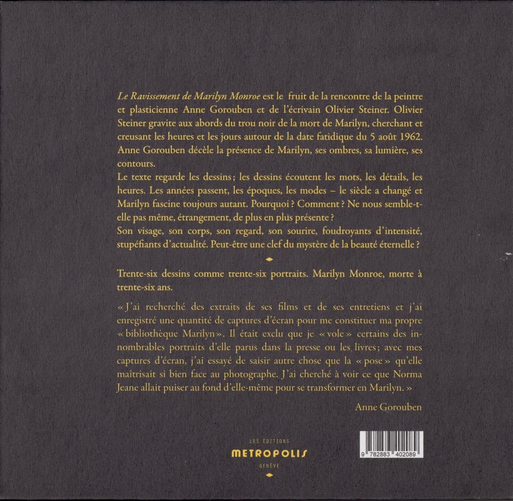 2021 LE RAVISSEMENT DE MARILYN MONROE, Anne Gorouben, Olivier Steiner, éditions MÉTROPOLIS, Suisse-Rencontre lancement à la librairie Les mots à la bouche décembre 2021, Paris
