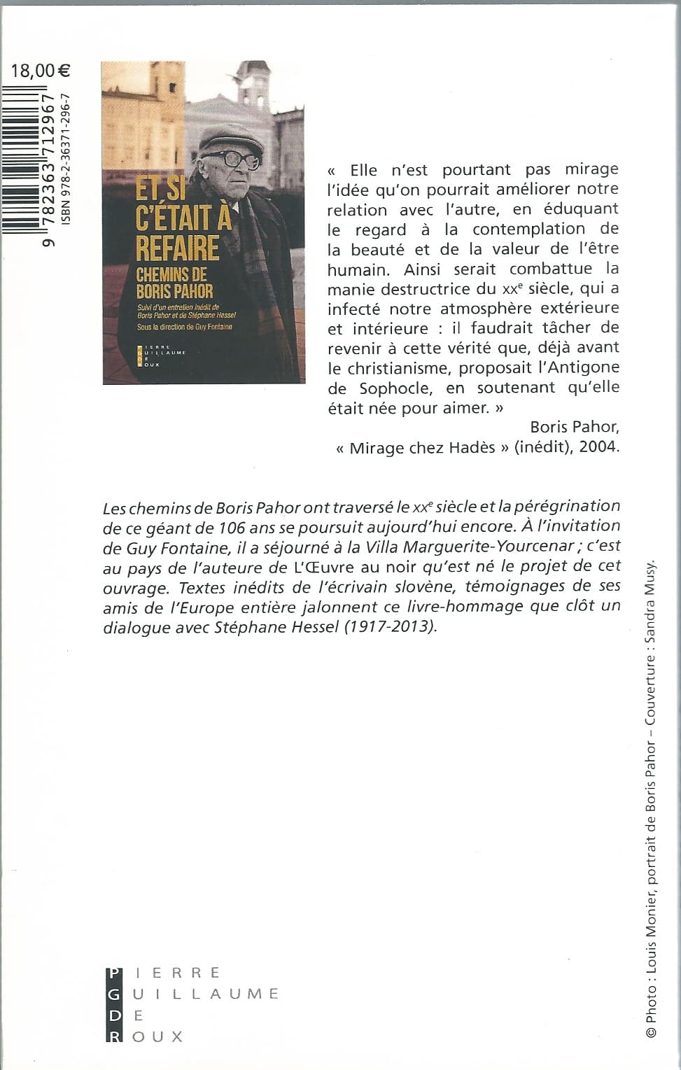 2018 ET SI C'ÉTAIT À REFAIRE, CHEMINS DE BORIS PAHORS, sous la direction de Guy Fontaine, éditions Pierre Guillaume De Roux