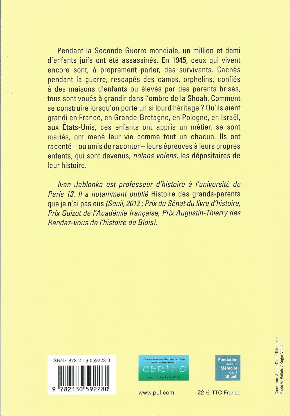 2014 L'ENFANT-SHOAH, sous la direction de Ivan Jablonka, PUF